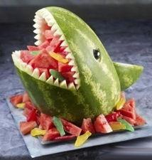 1. 准备一个新鲜的西瓜,用刀将西瓜皮切成适合头型的形状。